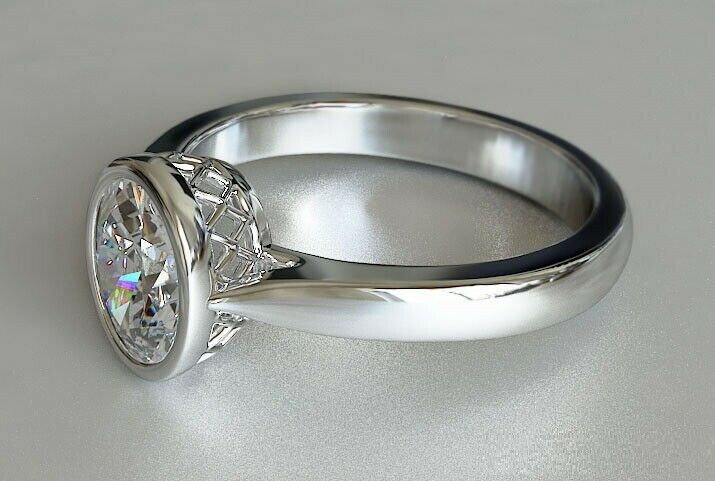 1ct Oval Cut Diamond Engagement Ring Bezel Set Solitaire 14k White Gold Finish