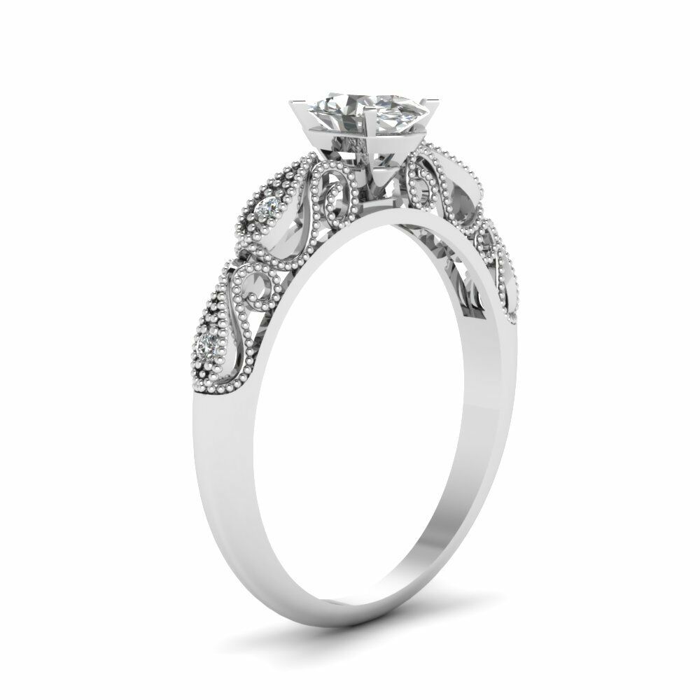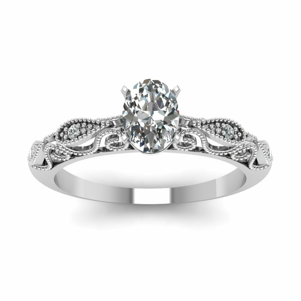 1ct Oval Cut Diamond Filigree Solitaire Engagement Ring 14k White Gold Finish