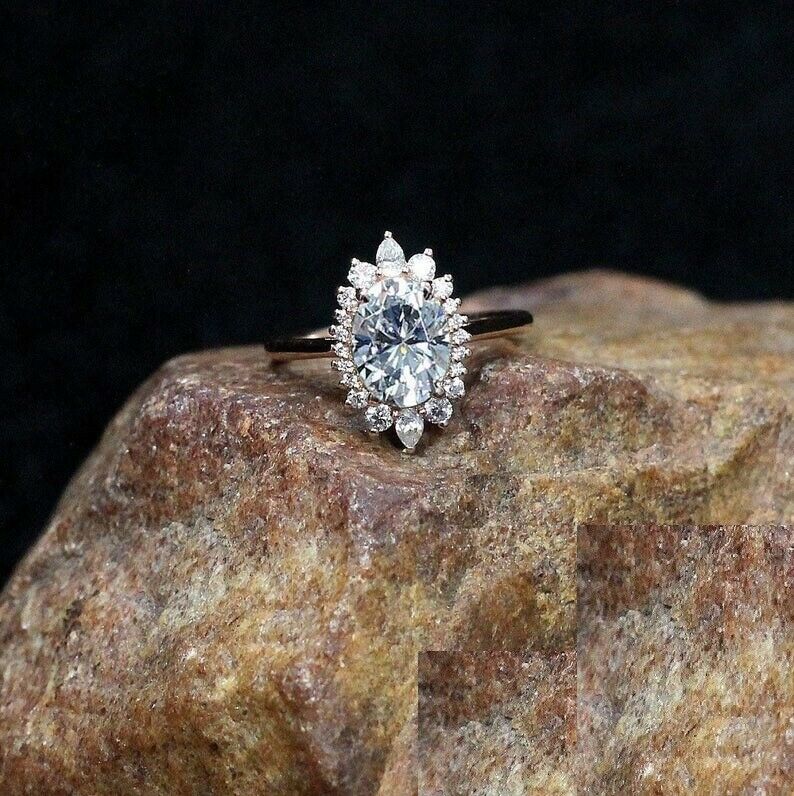 1ct Oval Cut VVS1D Diamond Engagement Ring Halo Solitaire 14k White Gold Finish