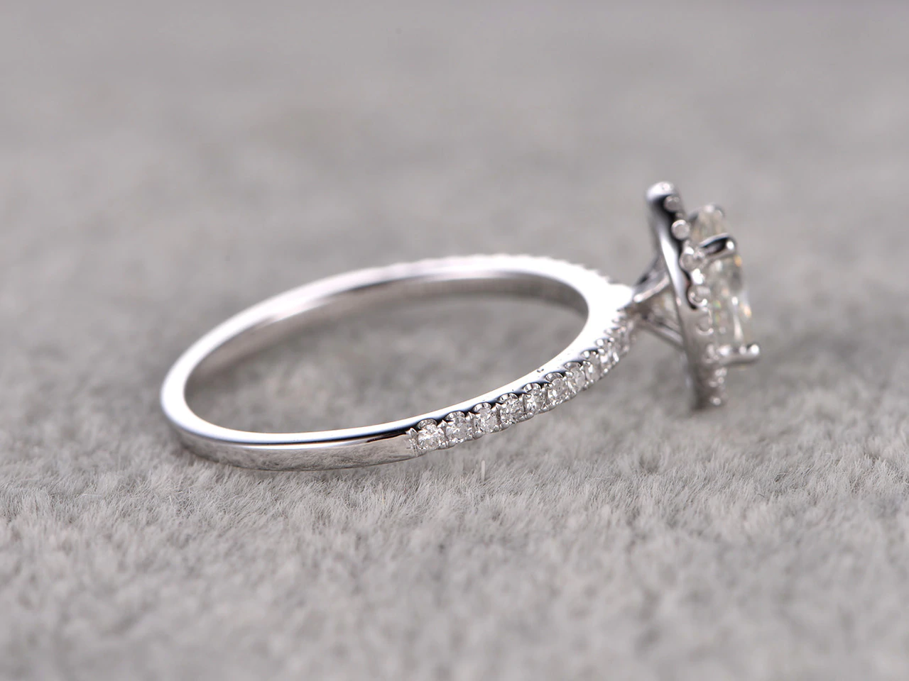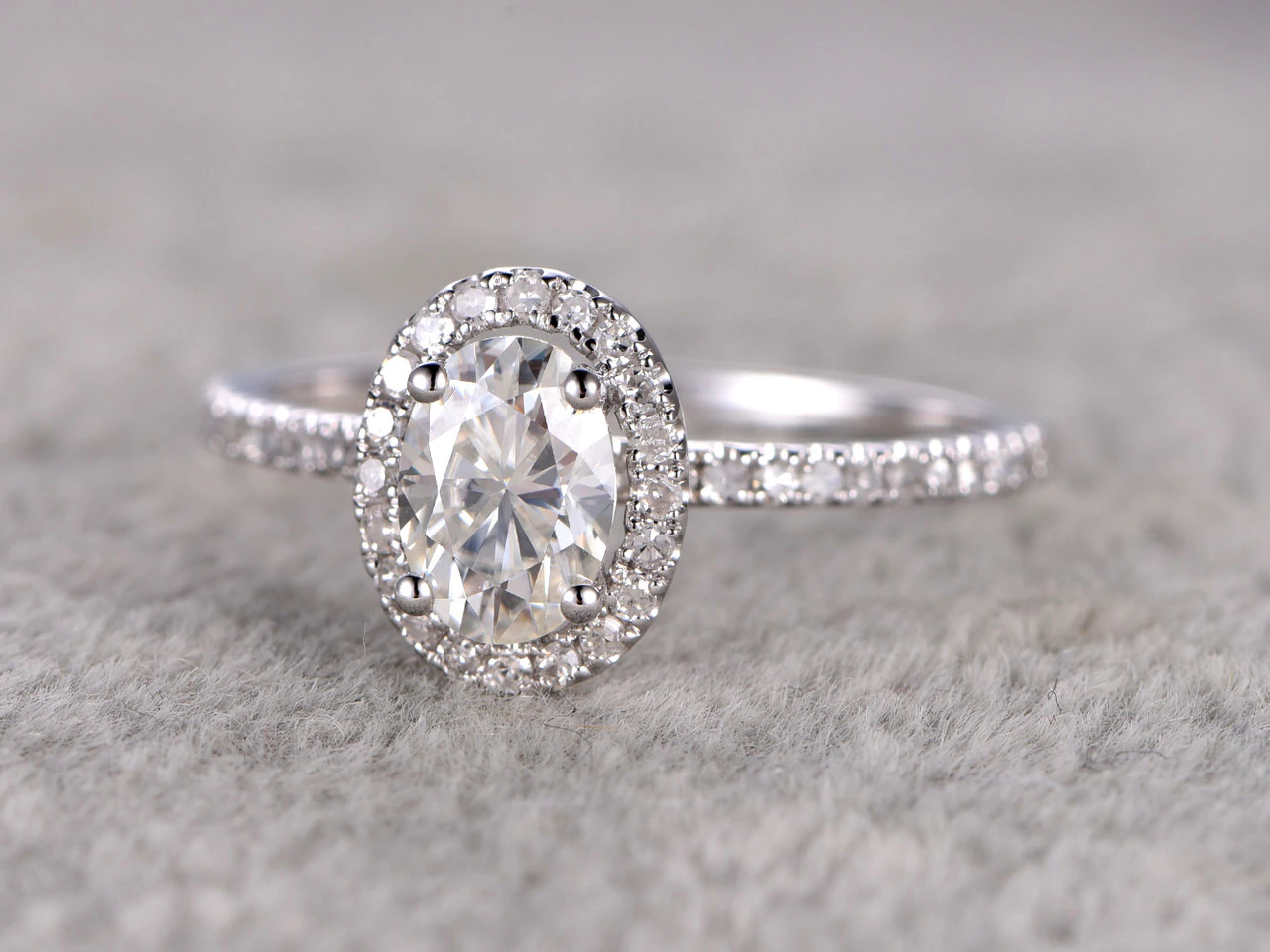 1ct Oval Cut Diamond Engagement Ring Halo Solitaire with Accent 14k White Gold Over