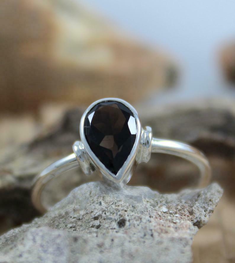 1ct Pear Cut Black Diamond Solitaire Design Engagement Ring 14k WhiteGold Finish