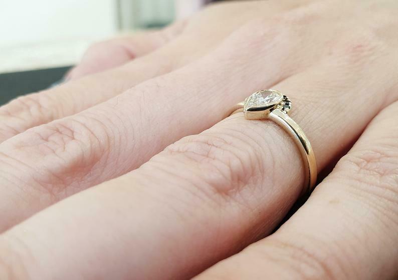 1ct Pear Cut Diamond Engagement Ring Curved Chevron Crown 14k Yellow Gold Finish