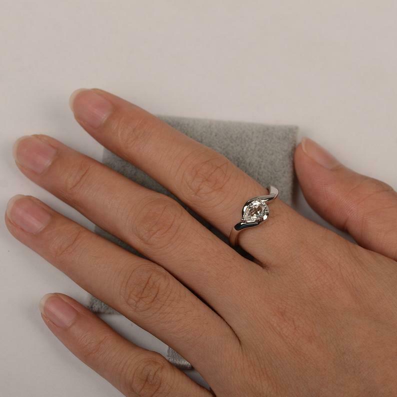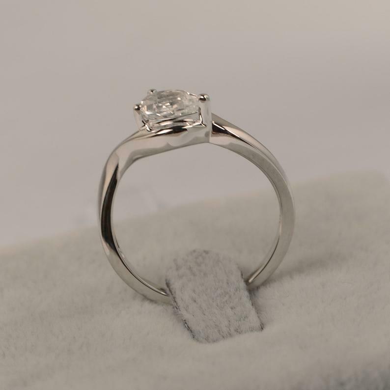 1ct Pear Cut Diamond Engagement Ring Swirl Twist Solitaire 14k White Gold Finish