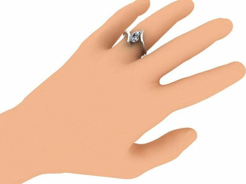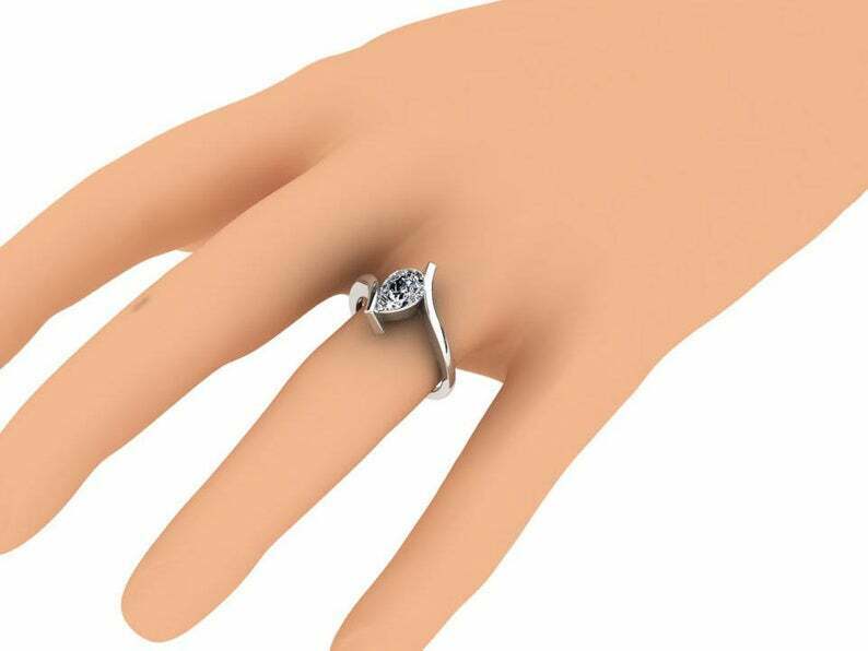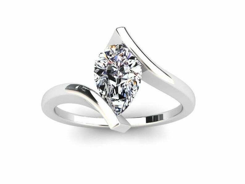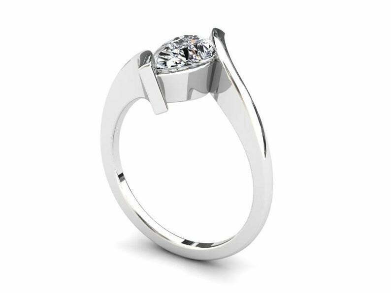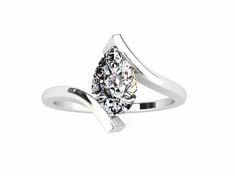 1ct Pear Cut VVS1D Diamond Engagement Ring Bypass Solitaire 14k WhiteGold Finish