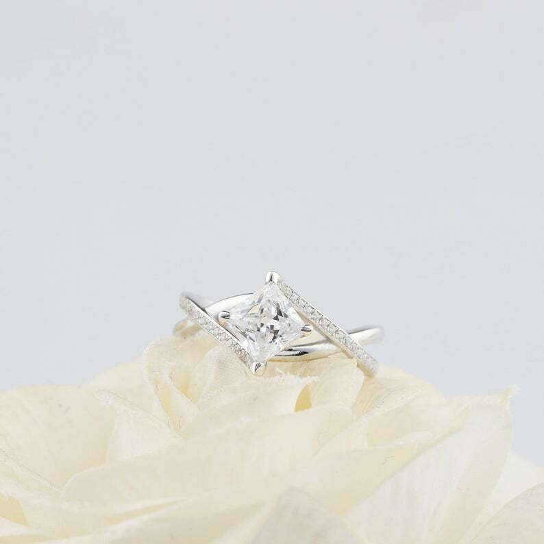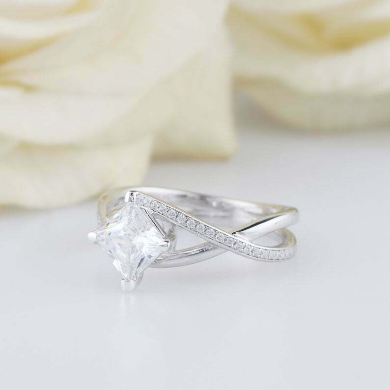 1ct Princess Cut Diamond Engagement Ring Twist Infinity Shank 14k WhiteGold Over