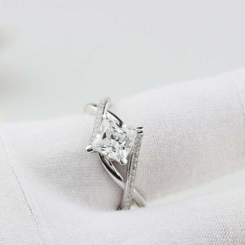 1ct Princess Cut Diamond Engagement Ring Twist Infinity Shank 14k White Gold Over