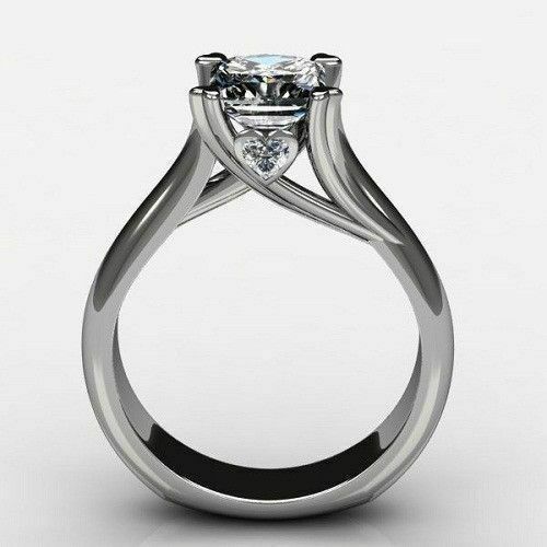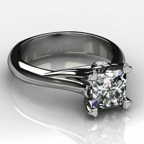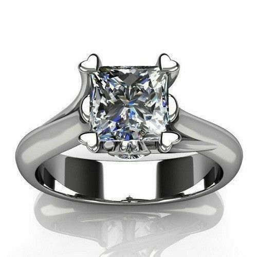 1Ct Princess Cut Diamond Heart Shape Prong Engagement Ring 14K White Gold Finish