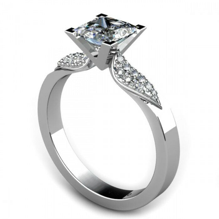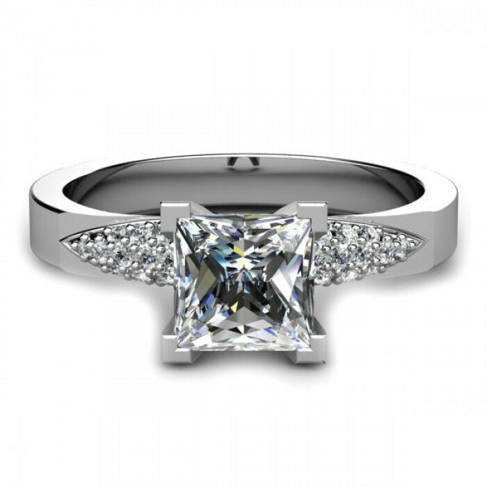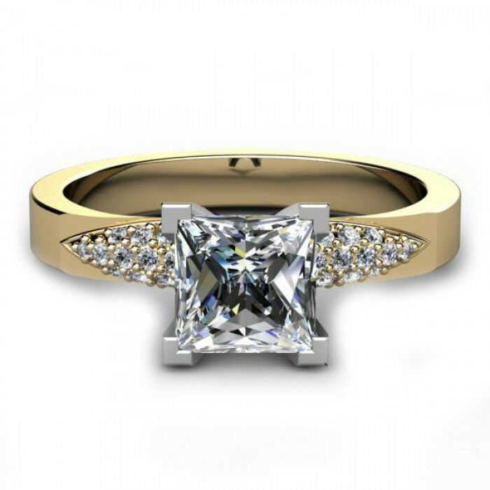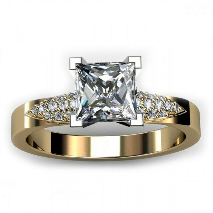 1ct Princess Cut Diamond Unique Design Engagement Ring Women 14k Gold Finish