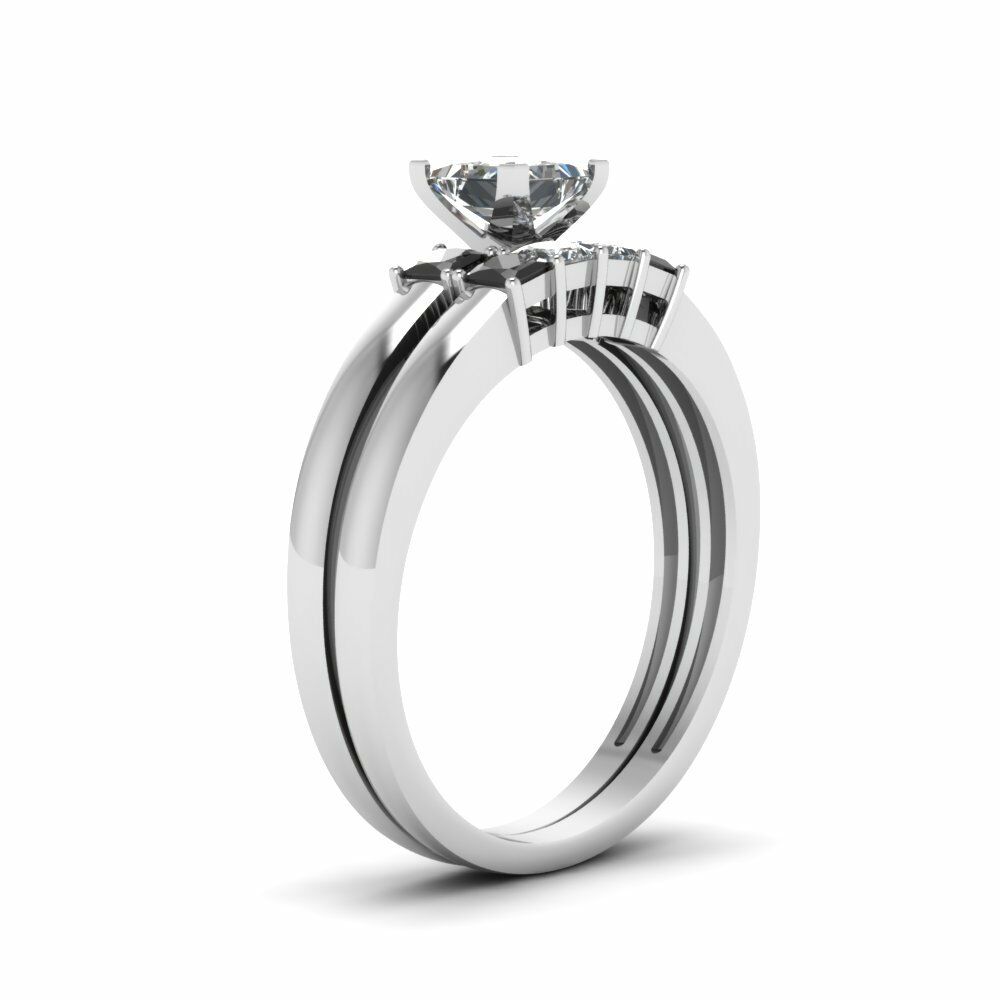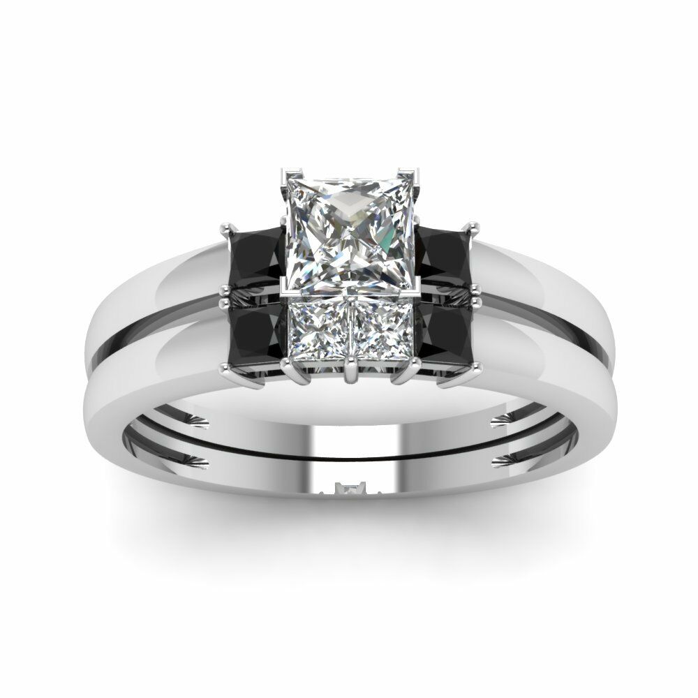 1ct Princess Cut VVS1 D Diamond Bridal Set Engagement Ring 14k White Gold Finish