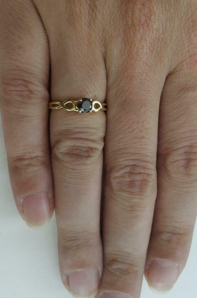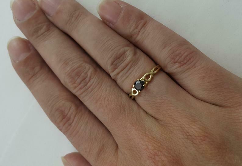 1ct Round Cut Black Diamond Engagement Ring Infinity Solitaire 14k Yellow Gold Finish