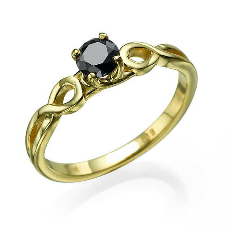 1ct Round Black Diamond Engagement Ring Infinity Solitaire 14k YellowGold Finish