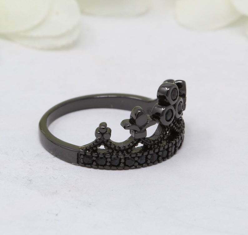 1ct Round Cut Black Diamond Engagement Ring Princess Queen Crown 14k Black Gold Over