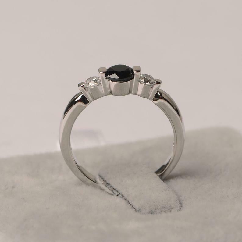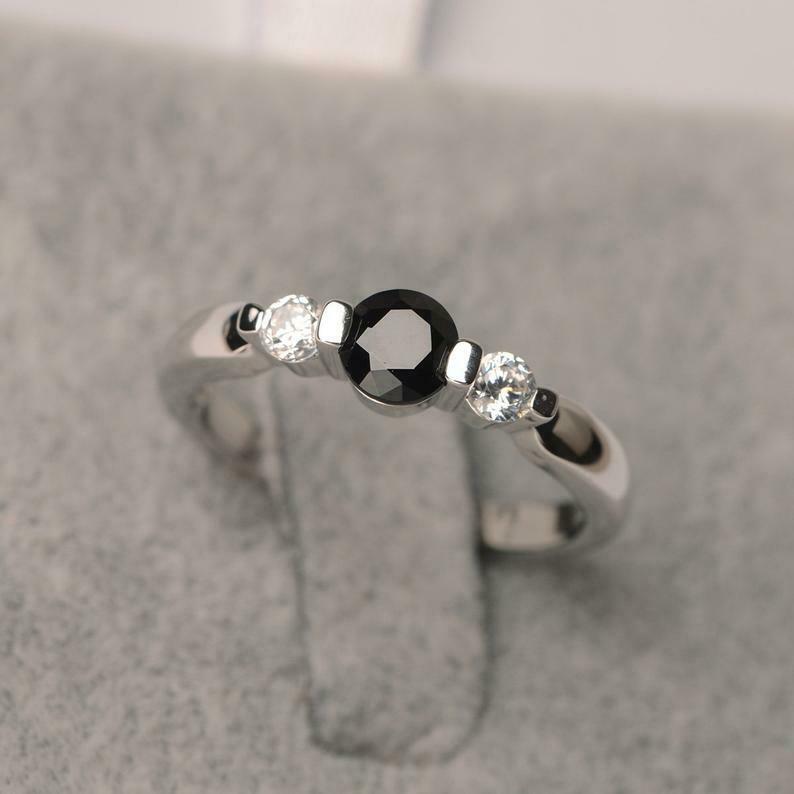 1ct Round Cut Black Diamond Engagement Ring Tension Set Trilogy 14k White Gold Over