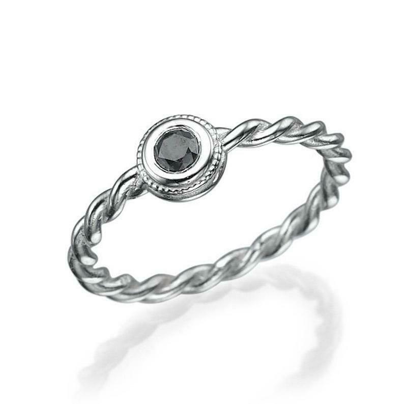 1ct Round Black Diamond Engagement Ring Twisted Rope Infinity 14k WhiteGold Over