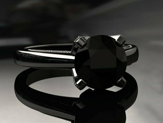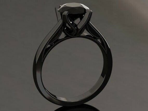 1Ct Round Black Diamond Milgrain Solitaire Engagement Ring 14K Black Gold Finish