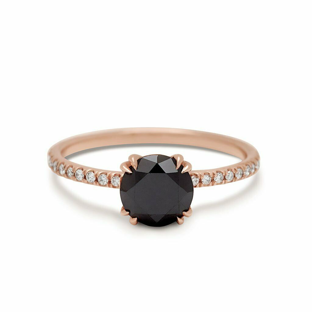 1ct Round Cut Black Diamond Engagement Ring 14k Rose Gold Over Accents Solitaire