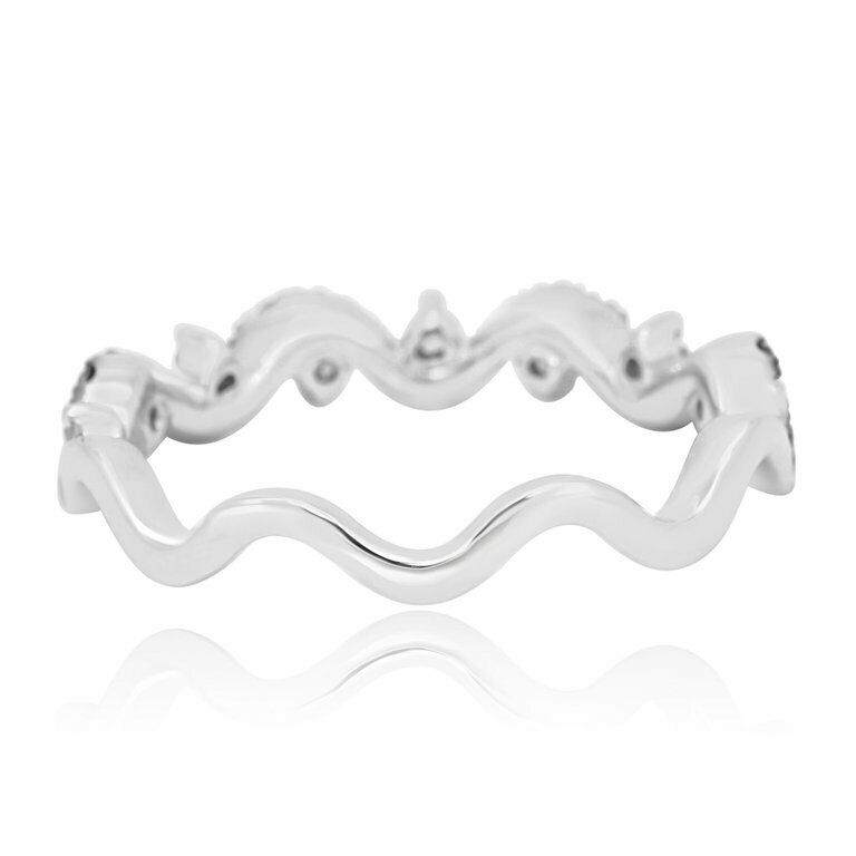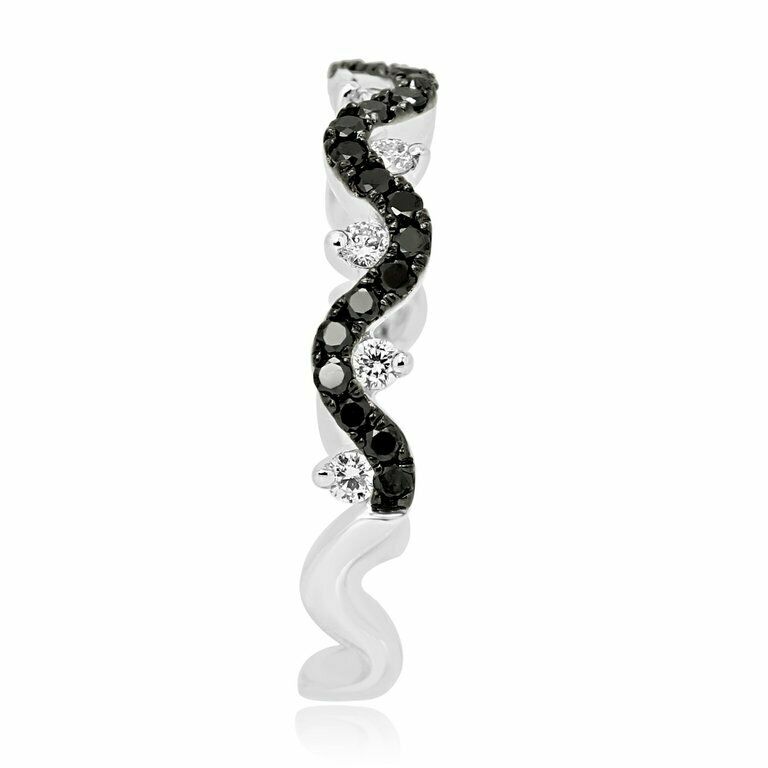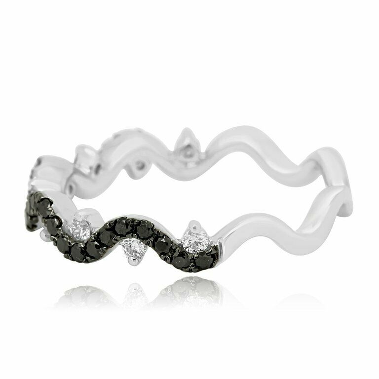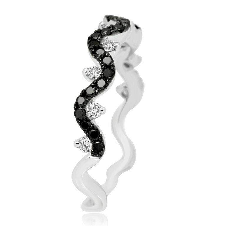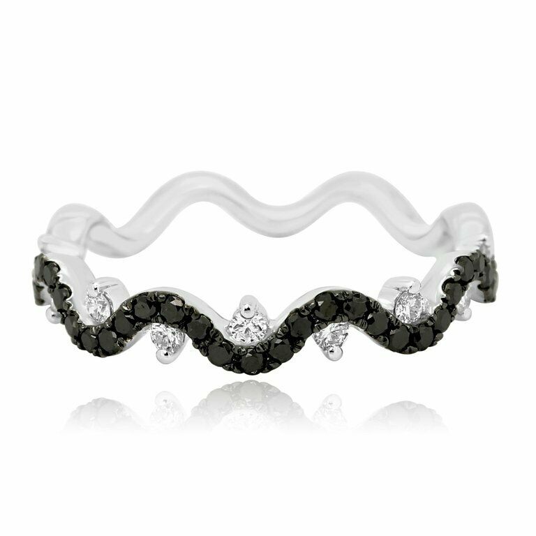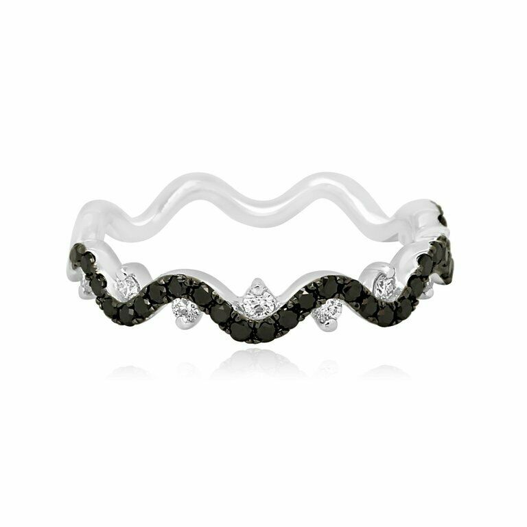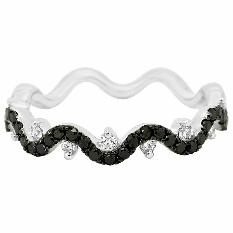 1ct Round Cut Black Diamond Stackable Wave Wedding Ring Band 14k White Gold Over