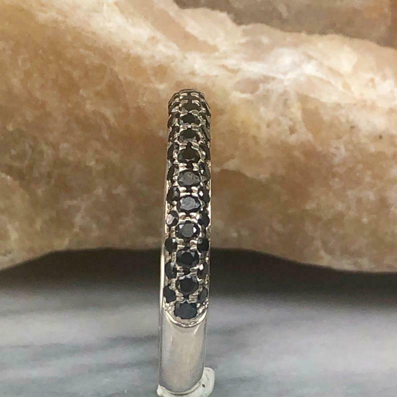 1ct Round Cut Black Diamond Wedding Band Ring Half Eternity 14k WhiteGold Finish