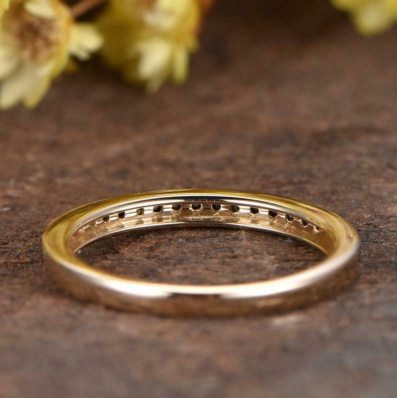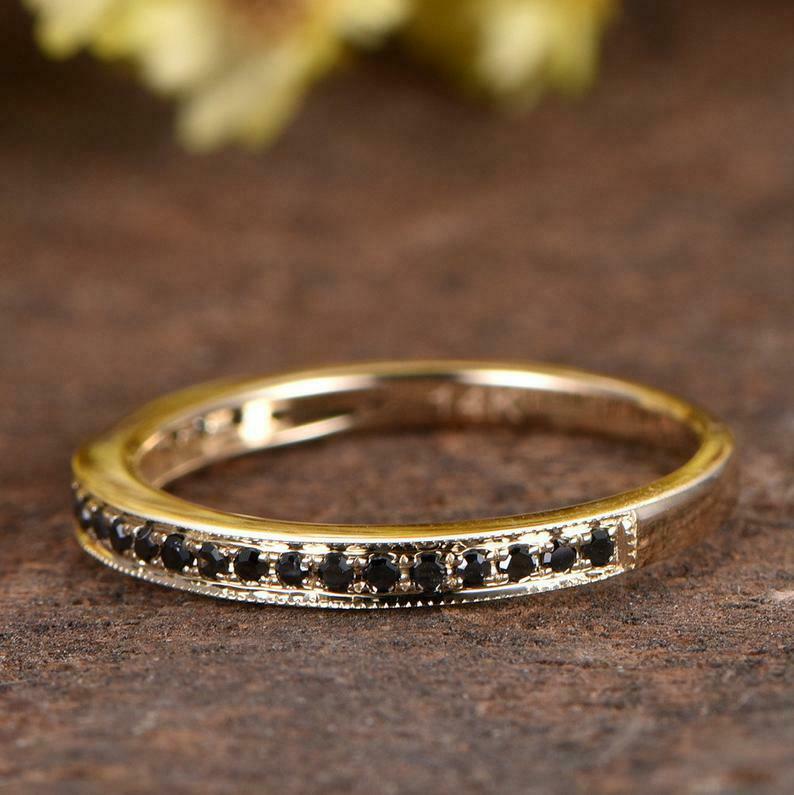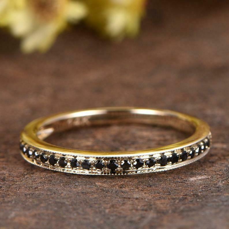 1ct Round Cut Black Diamond Wedding Band Vintage Eternity 14k Yellow Gold Finish