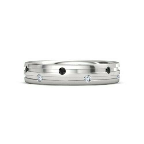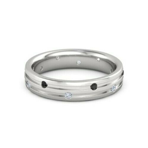 1Ct Round Cut Black White Diamond Stylish Wide Wedding Band 14K White Gold Over