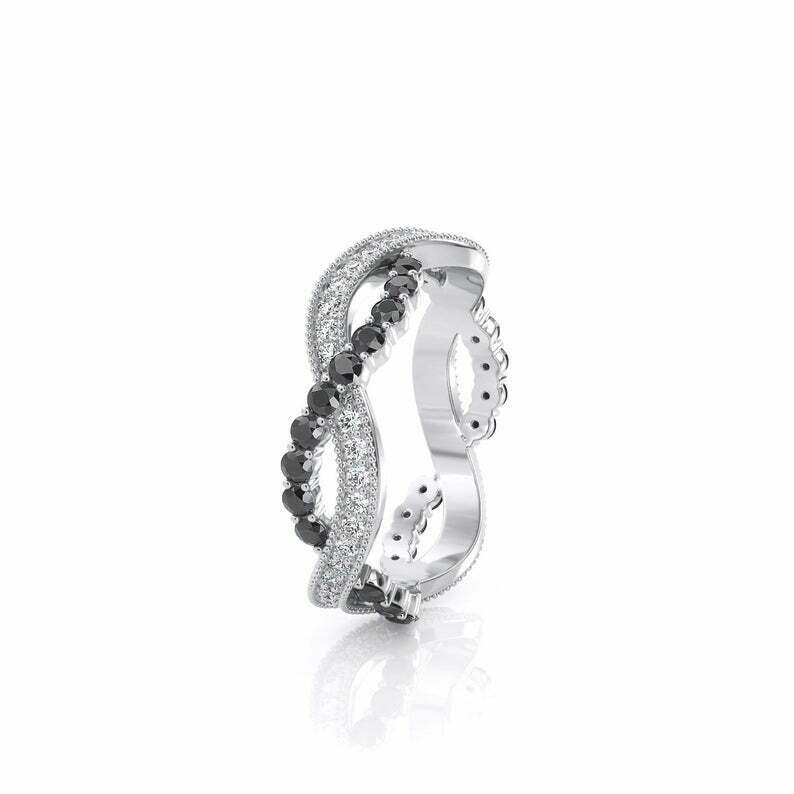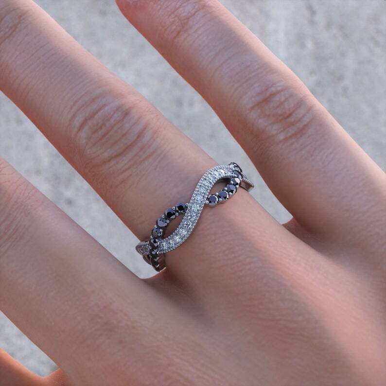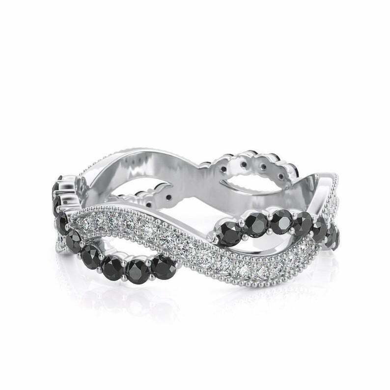 1ct Round Cut Black & White Diamond Wedding Band Infinity 14k White Gold Finish