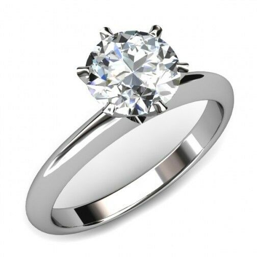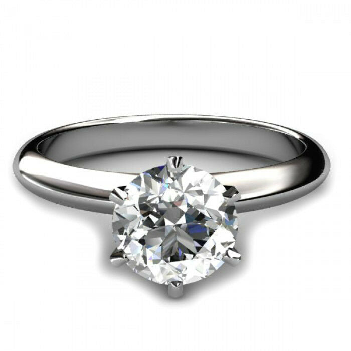 1ct Round Cut Diamond 6 Prong Classic Engagement Ring 14k White Gold Finish