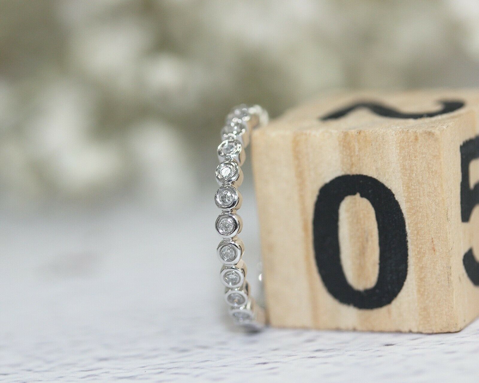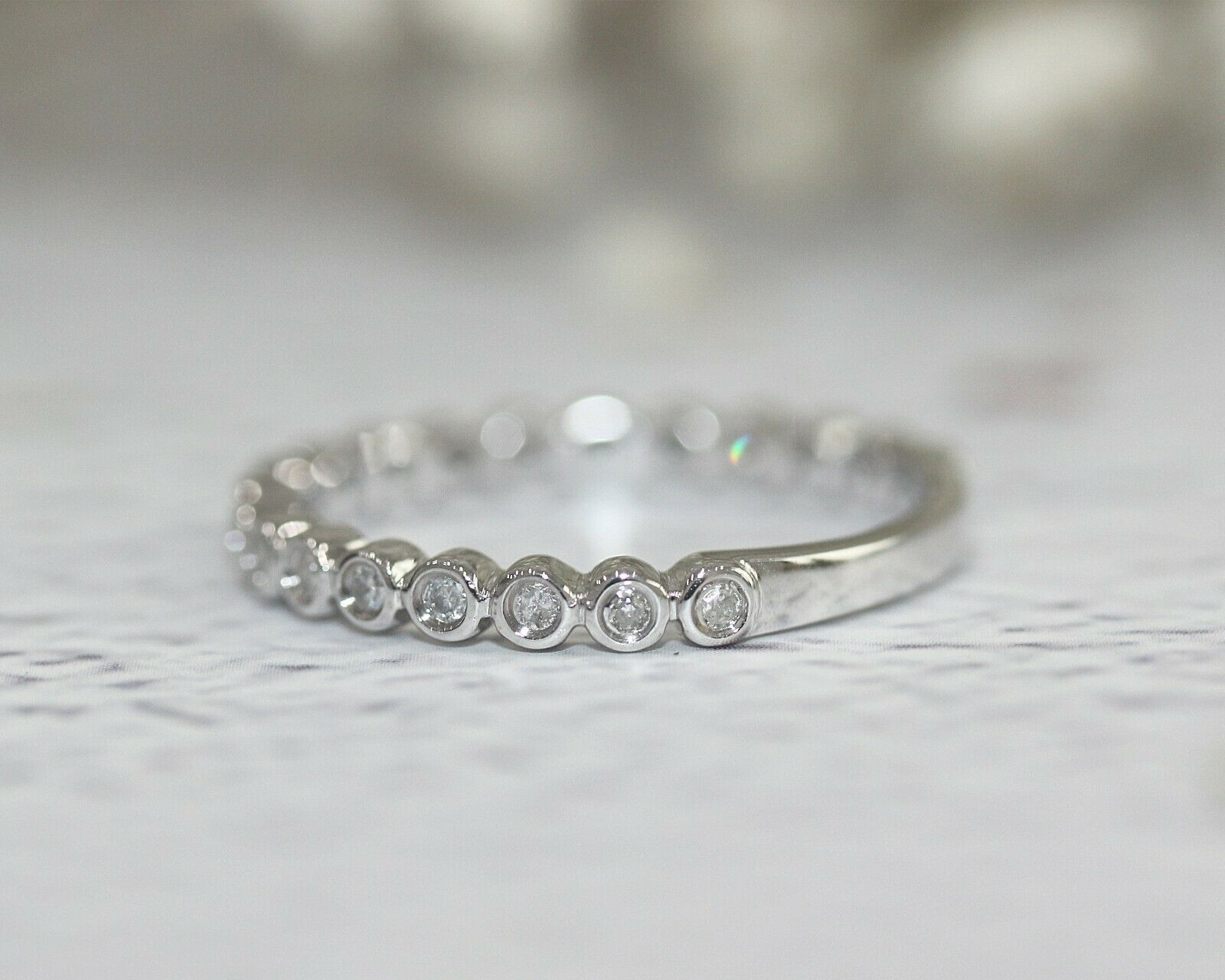 1Ct Round Cut Diamond Bezel Set Stackable Wedding Band 14K White Gold Finish