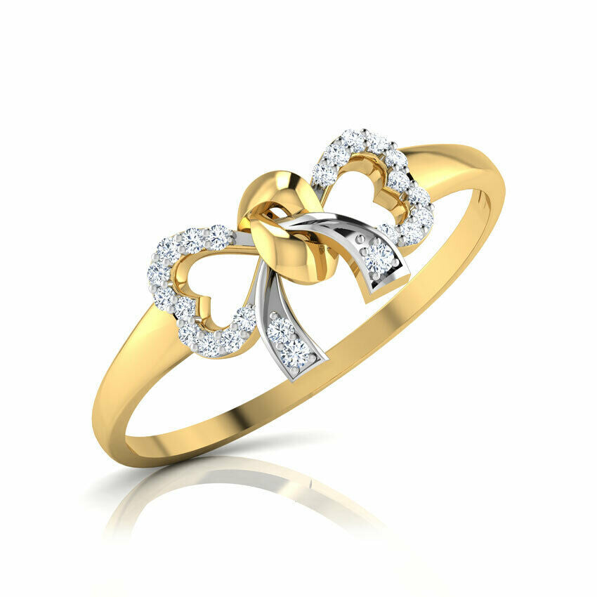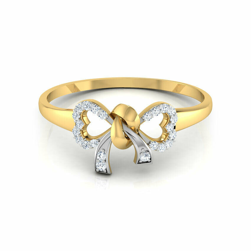 1Ct Round Cut Diamond Bow Knot Stylish Engagement Ring 14K Dual Gold Finish