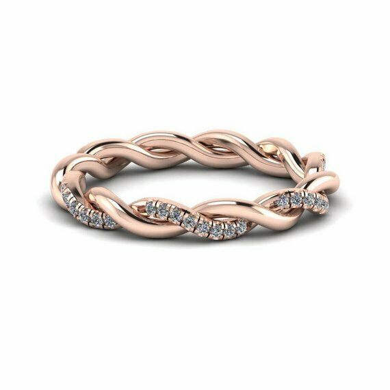 1ct Round Cut Diamond Braided Infinity Wedding Ring Band 14k Rose Gold Finish