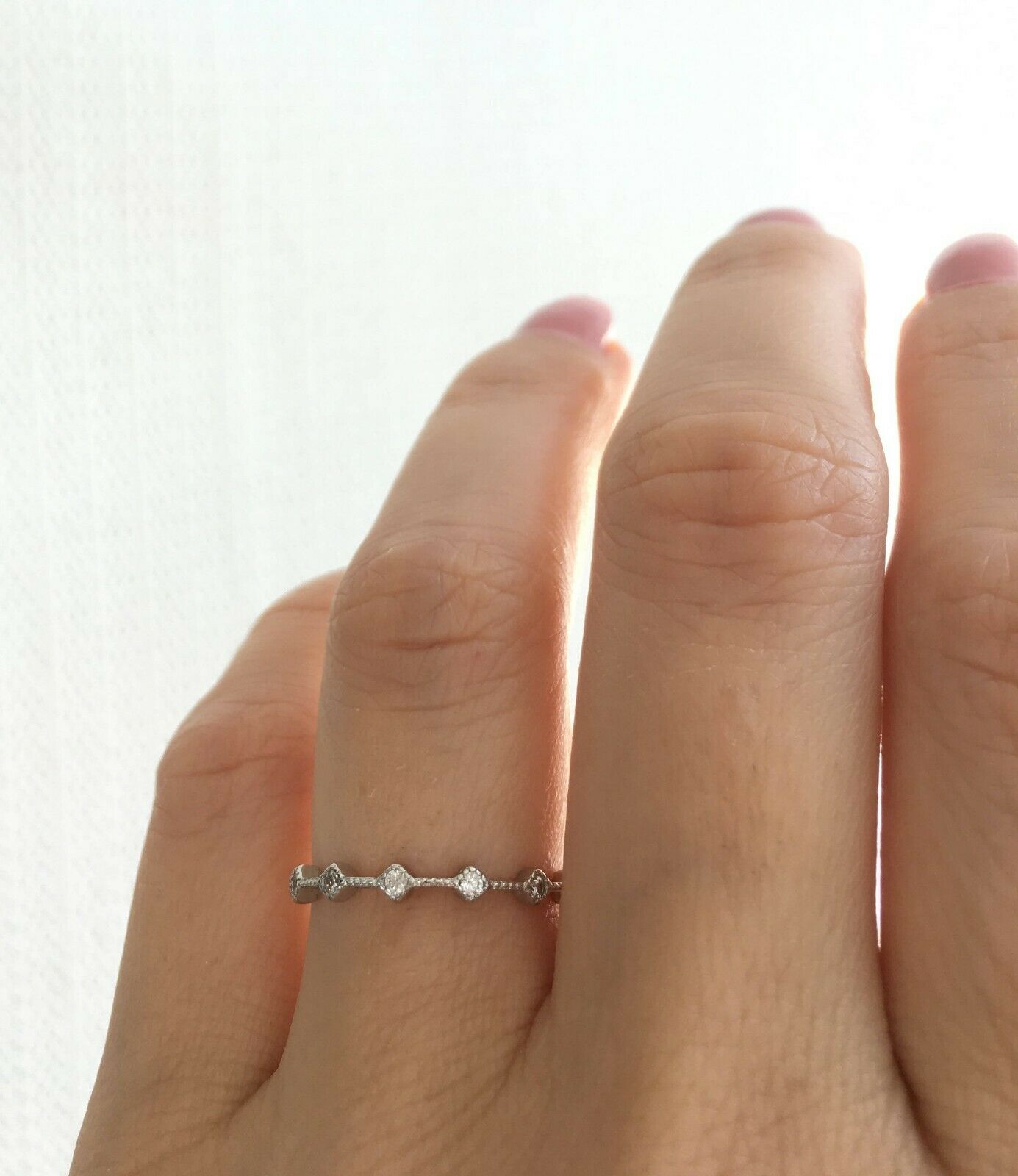 1Ct Round Cut Diamond Dainty Minimalist Women Wedding Band 14K White Gold Finish