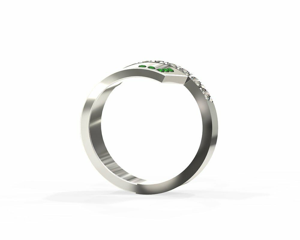1Ct Round Cut Diamond Emerald Unique ByPass Engagement Ring 14K White Gold Over