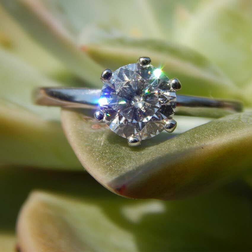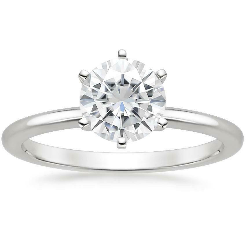1ct Round Cut Diamond Engagement Ring 14k White Gold Finish Six Prong Solitaire