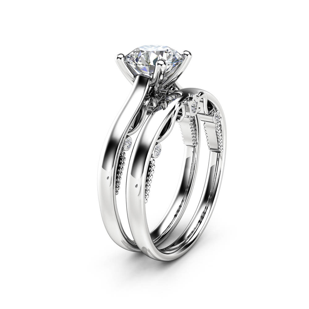 1ct Round Cut Diamond Engagement Ring 14k White Gold Finish Unique Bridal Set