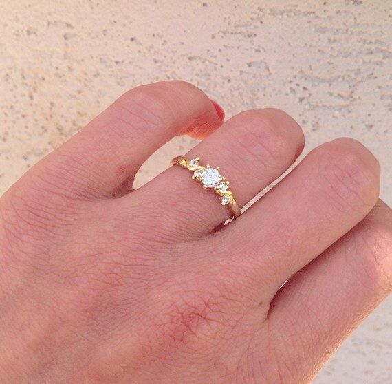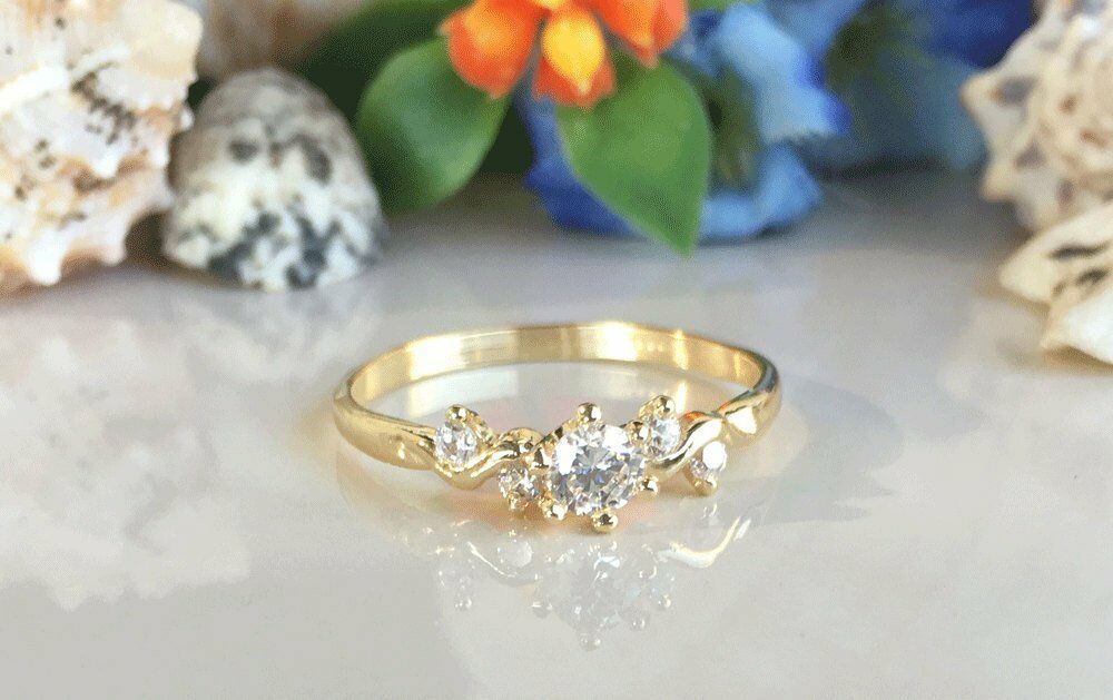 1ct Round Cut Diamond Engagement Ring 14k Yellow Gold Over Five Stone Minimalist