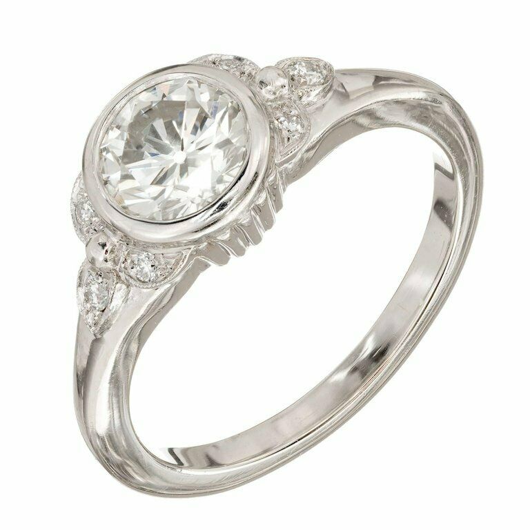 1ct Round Cut Diamond Engagement Ring Art Deco Solitaire 14k White Gold Finish