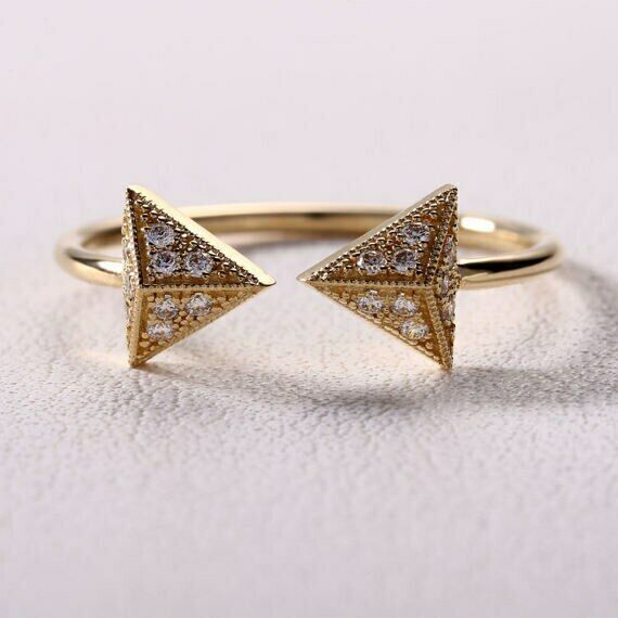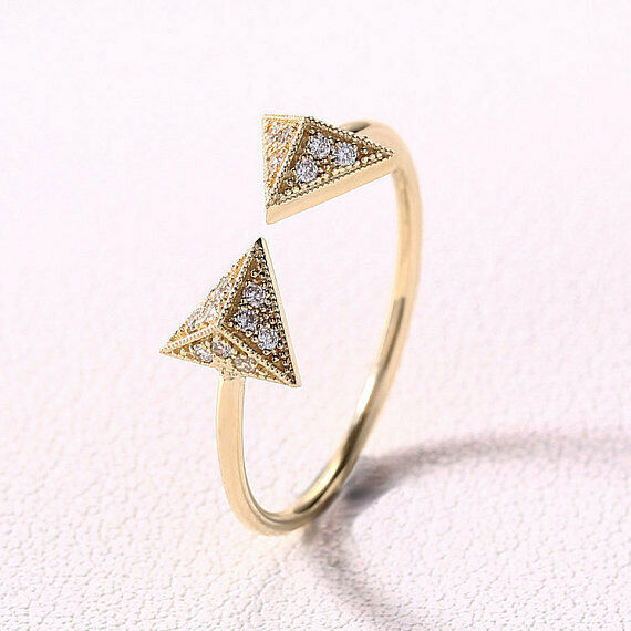 1ct Round Cut Diamond Engagement Ring Egyptian Triangle Open 14k Yellow Gold Over