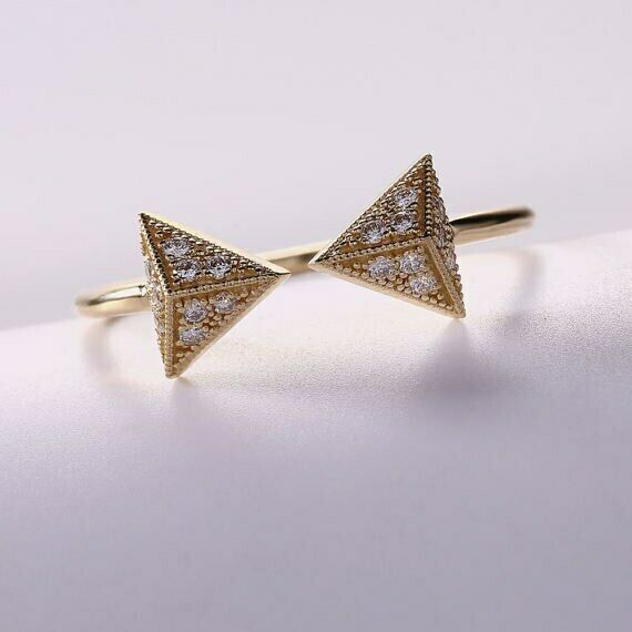 1ct Round Cut Diamond Engagement Ring Egyptian Triangle Open 14k YellowGold Over
