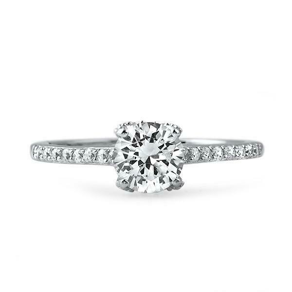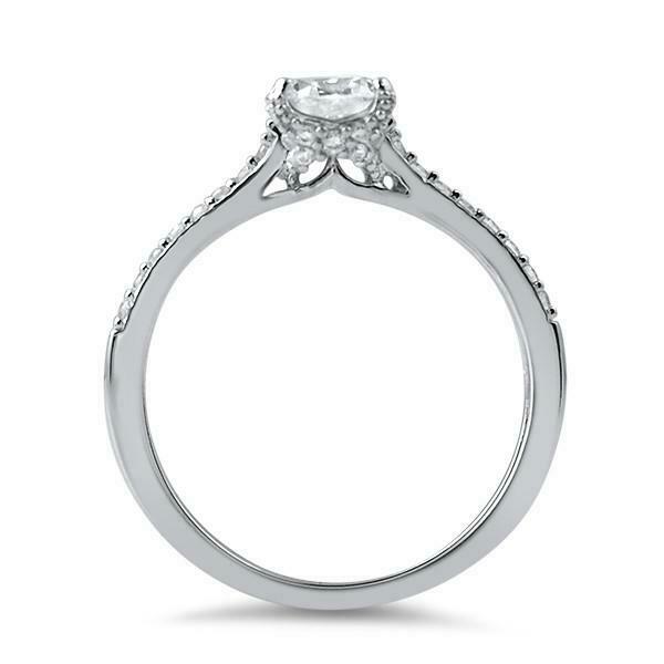 1ct Round Cut Diamond Engagement Ring Fancy Accent Solitaire 14k White Gold Over