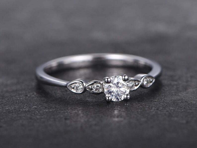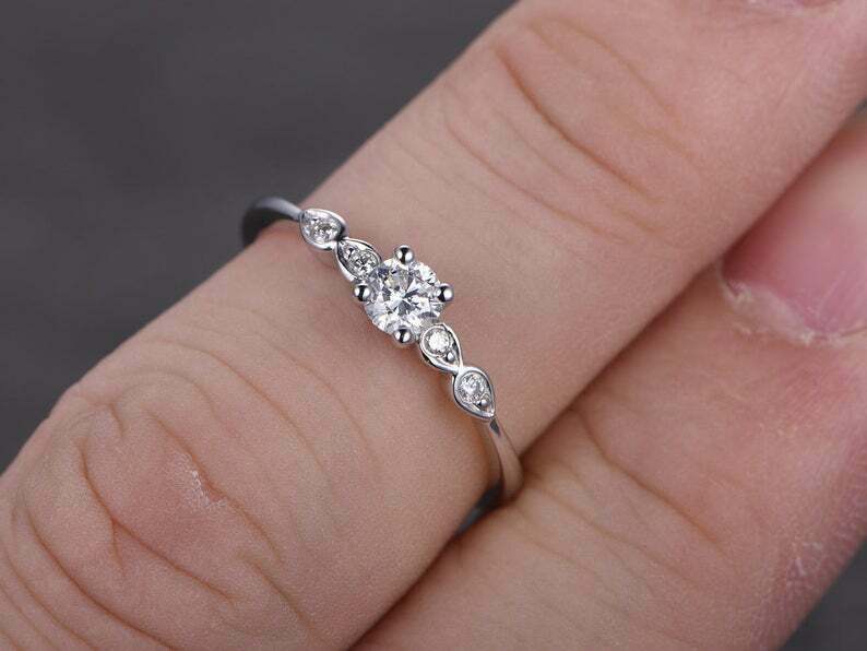 1ct Round Cut Diamond Engagement Ring Five Stone Solitaire 14k White Gold Finish
