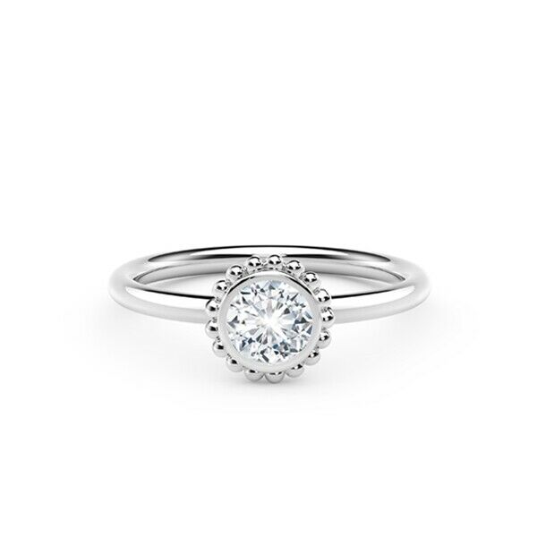 1ct Round Cut Diamond Engagement Ring Floral Beaded Solitaire 14k WhiteGold Over