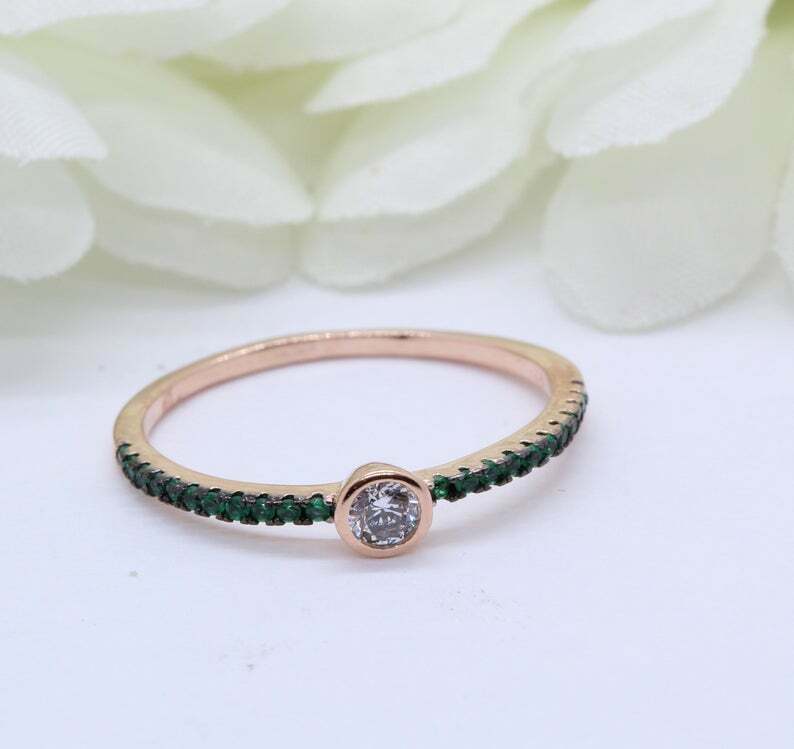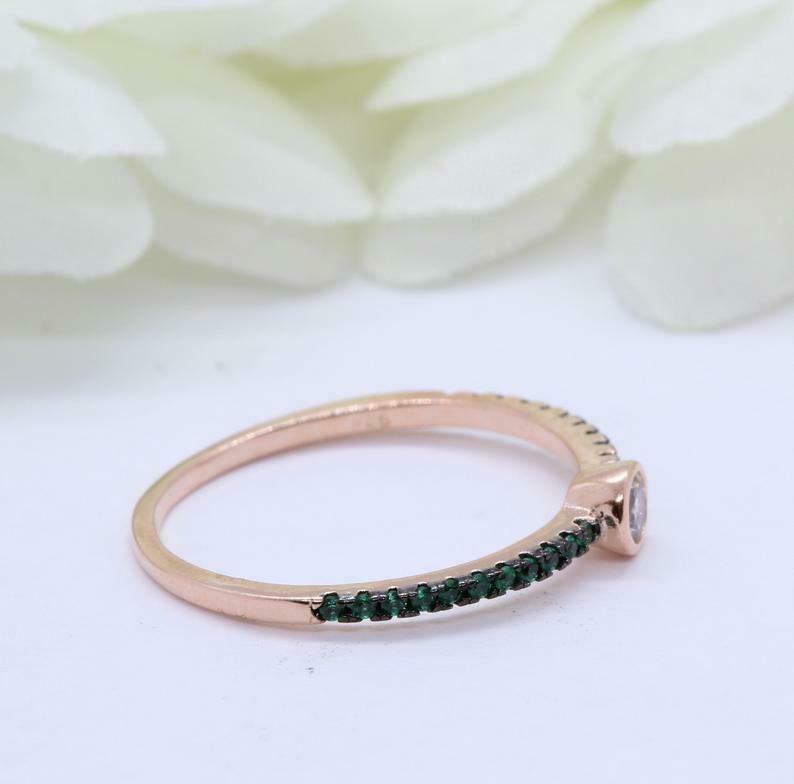 1ct Round Cut Diamond Engagement Ring Green Emerald Accent 14k Rose Gold Finish