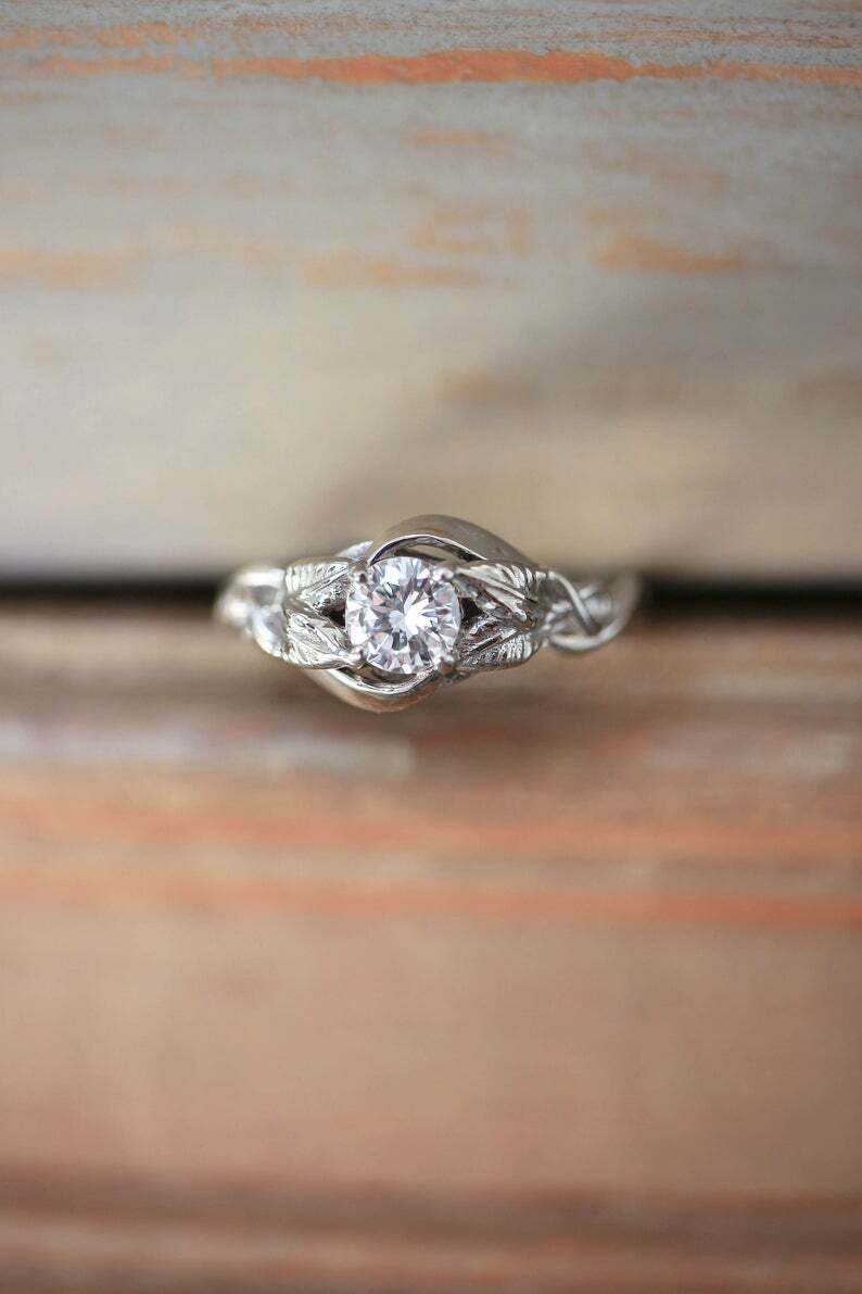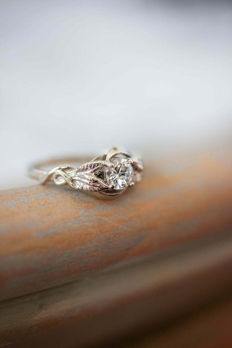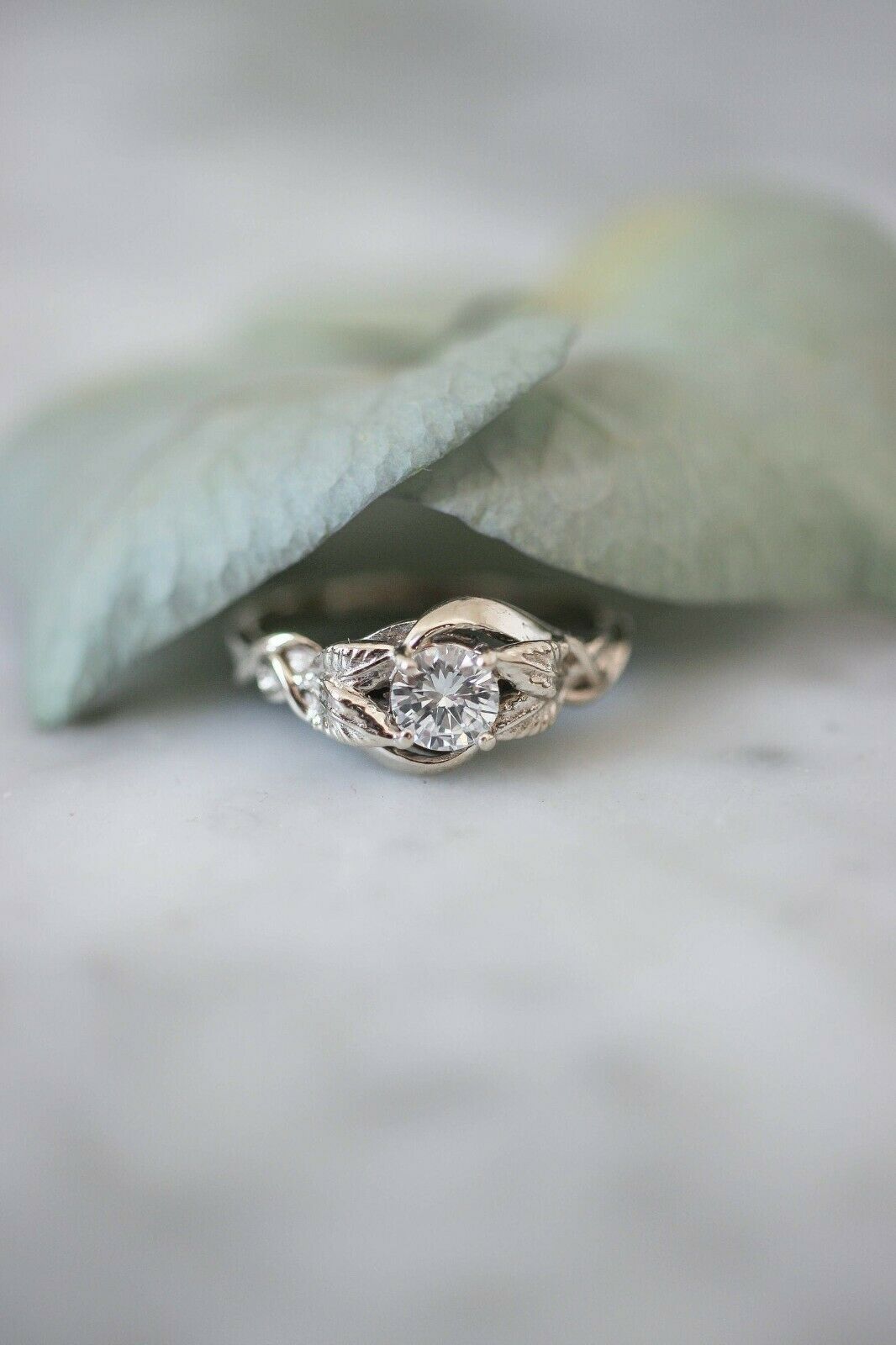 1ct Round Cut Diamond Engagement Ring Leaf Vine Solitaire 14k White Gold Finish