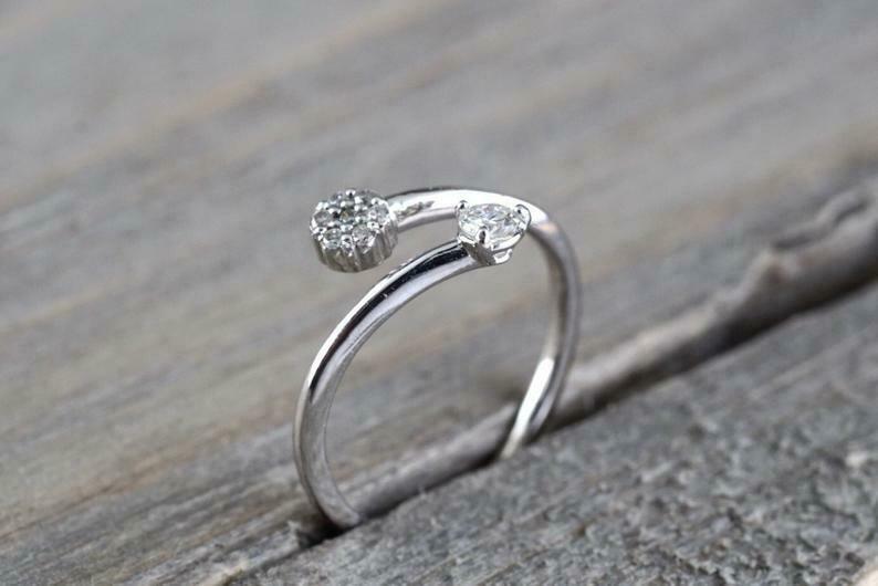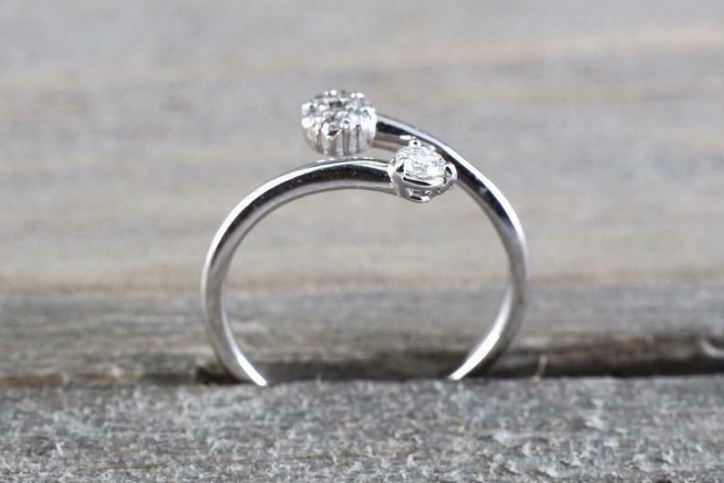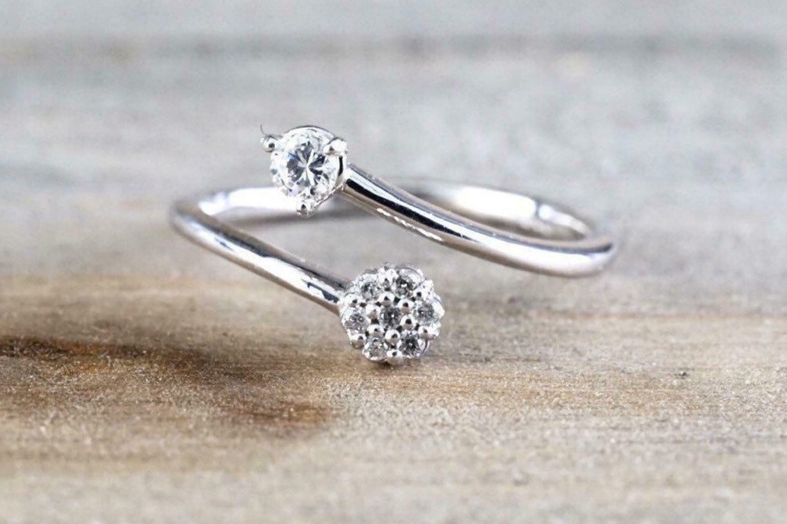 1ct Round Cut Diamond Engagement Ring Open Bypass Floral 14k White Gold Finish