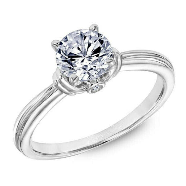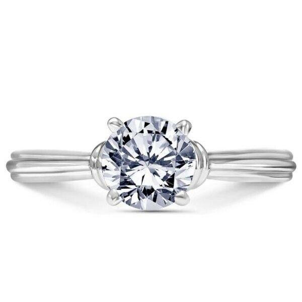 1ct Round Cut Diamond Engagement Ring Solitaire Collar Accent 14k White Gold Over