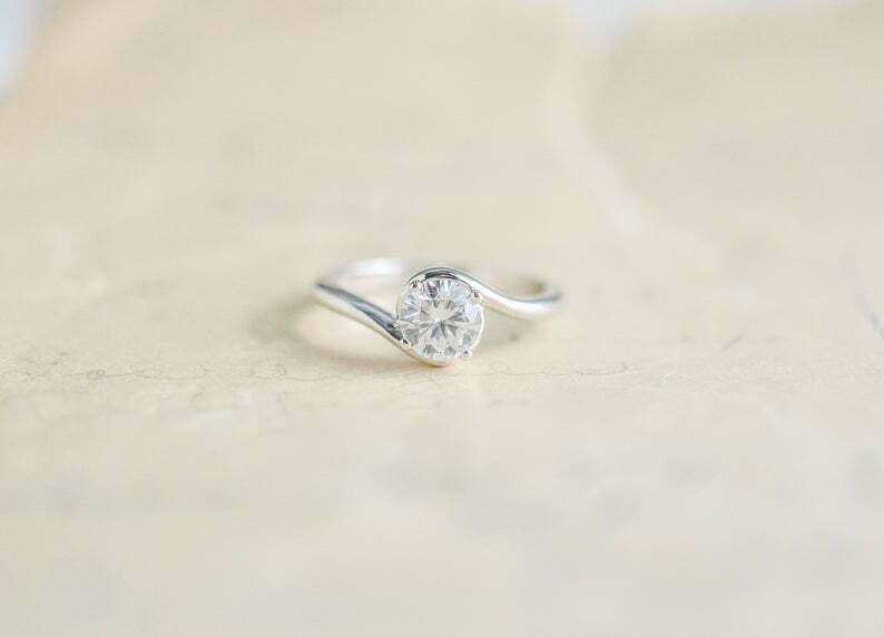 1ct Round Cut Diamond Engagement Ring Solitaire Minimalist 14k White Gold Finish