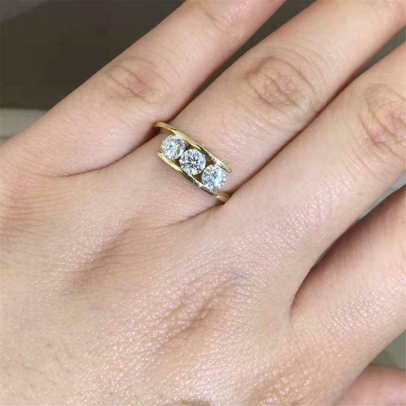 1ct Round Cut Diamond Engagement Ring Solitaire Trilogy 14k Yellow Gold Finish