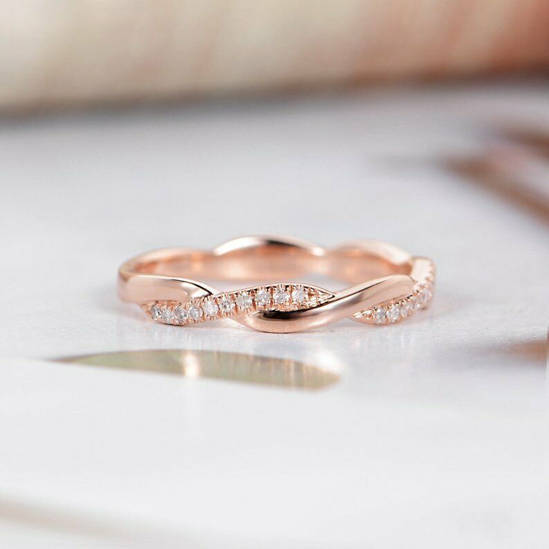 1ct Round Cut Diamond Engagement Ring Twisted Rope Infinity 14k Rose Gold Finish