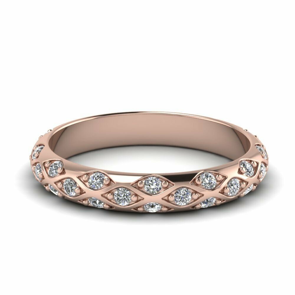1ct Round Cut Diamond Fancy Pave Set Wedding Ring Band 14k Rose Gold Finish
