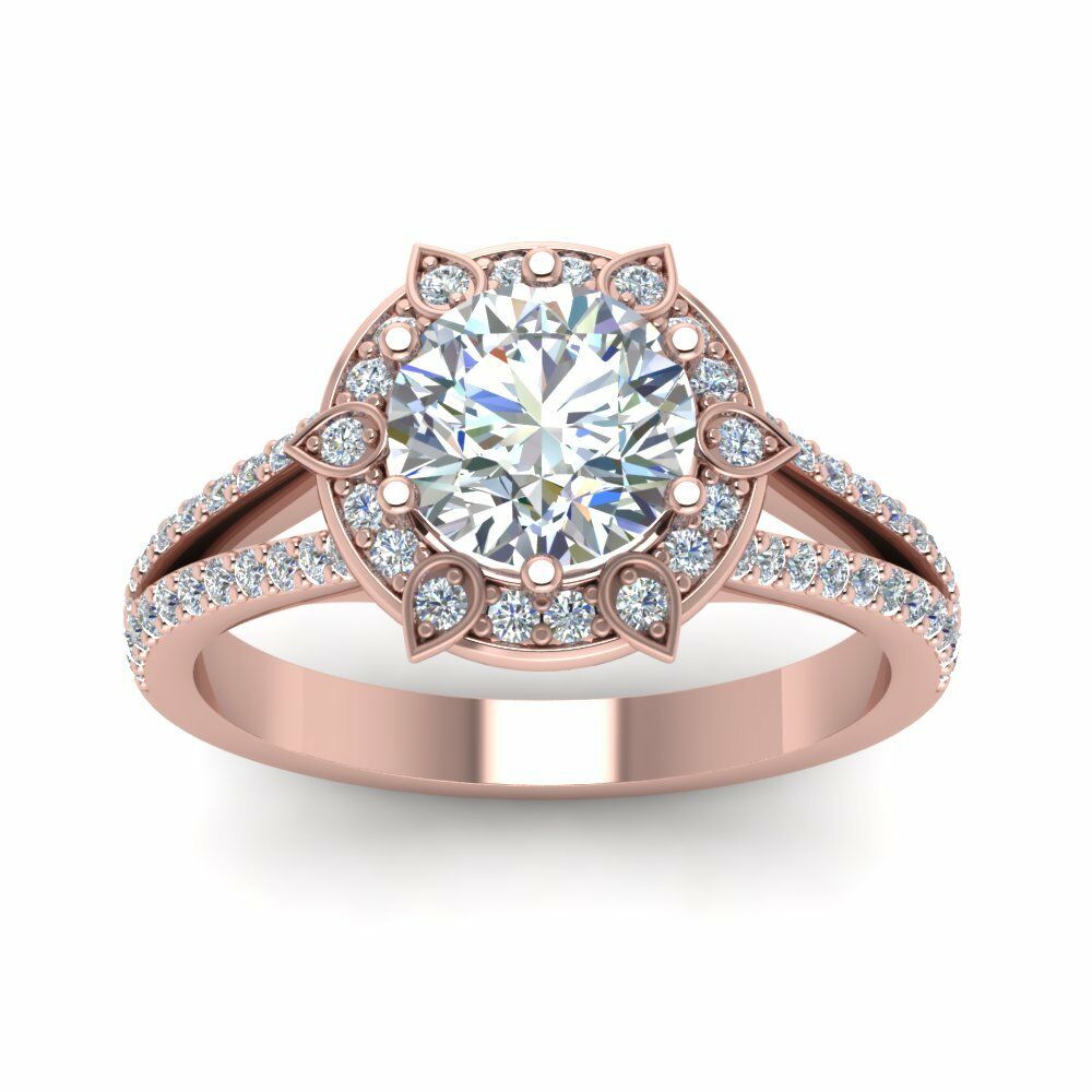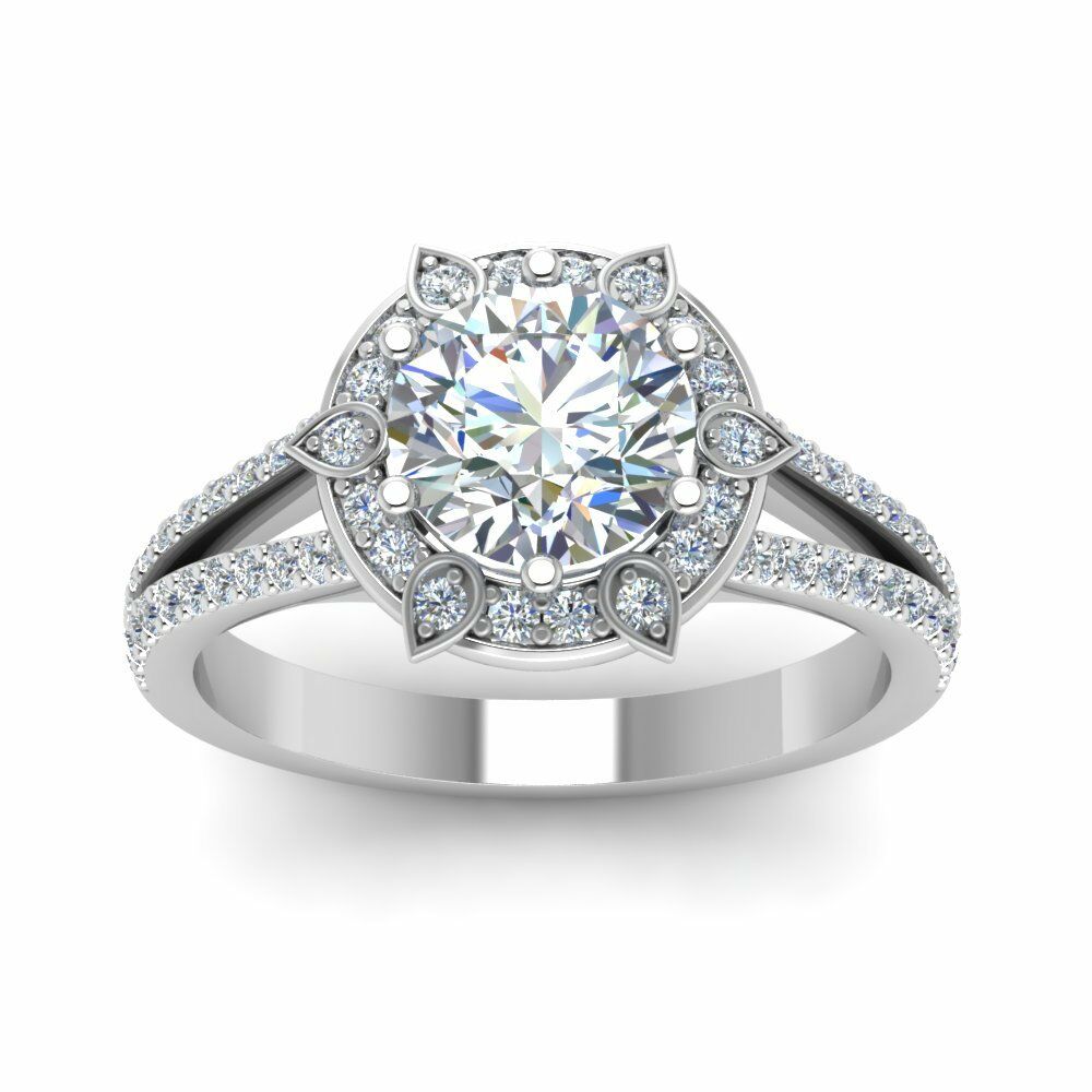 1ct Round Cut Diamond Flower Solitaire Engagement Ring 14k WhiteRose Gold Finish