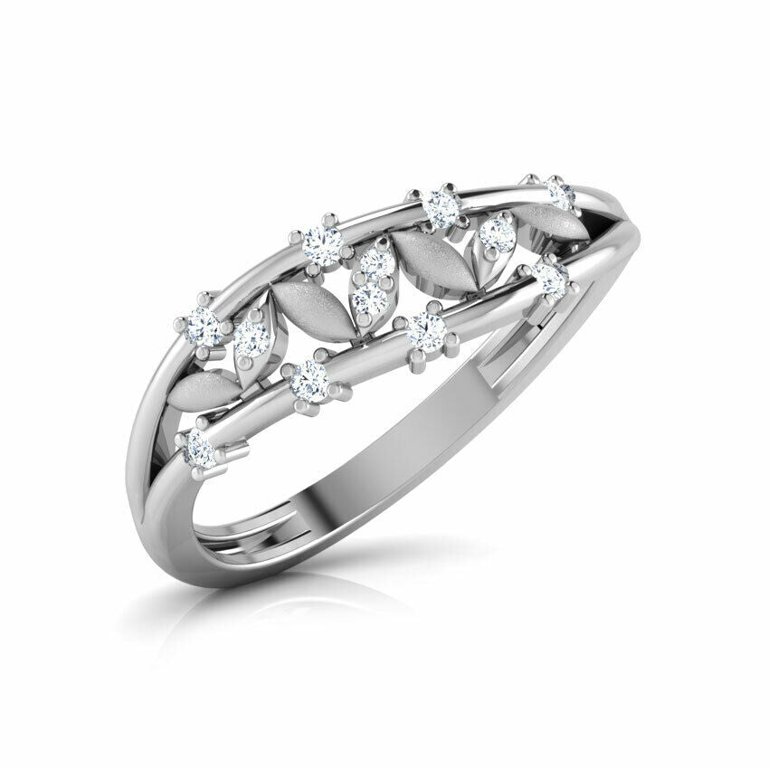 1Ct Round Cut Diamond Leaf Vine Nature Engagement Ring 14K White Gold Finish